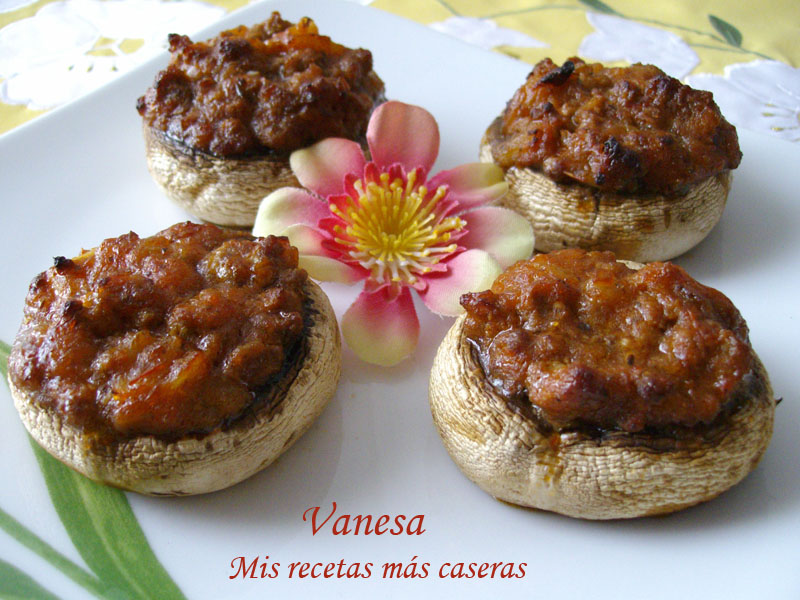 Champiñones rellenos de carne